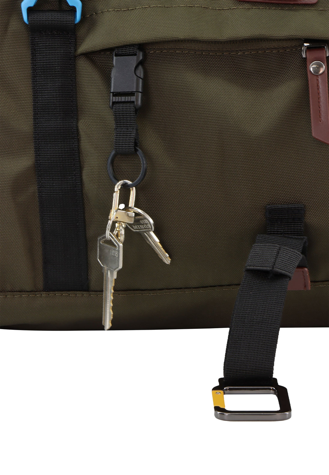 - Ein praktischer Schlüsselanhängerhalter in der Seitentasche sowie ein Gepäckgurt, mit dem Sie Ihre Tasche auf Reisen an den Griff eines Koffers hängen können